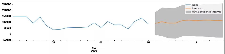 但需要注意,時(shí)間序列模型無(wú)法判斷相對(duì)于樣本較長(zhǎng)期的數(shù)據(jù)預(yù)測(cè),根據(jù)以往經(jīng)驗(yàn),不得超過(guò)3倍q值或k值,否則會(huì)導(dǎo)致預(yù)測(cè)數(shù)據(jù)平穩(wěn)化,從而失去算法預(yù)測(cè)意義。且置信區(qū)間會(huì)隨著預(yù)測(cè)周期的延長(zhǎng)而變?yōu)槔葼?,預(yù)測(cè)方差檢驗(yàn)會(huì)越來(lái)越大,也就失去了判斷的標(biāo)準(zhǔn)。實(shí)際經(jīng)營(yíng)中,交易能力的判斷也許會(huì)影響商業(yè)調(diào)改、經(jīng)營(yíng)預(yù)警等等經(jīng)營(yíng)環(huán)節(jié)。