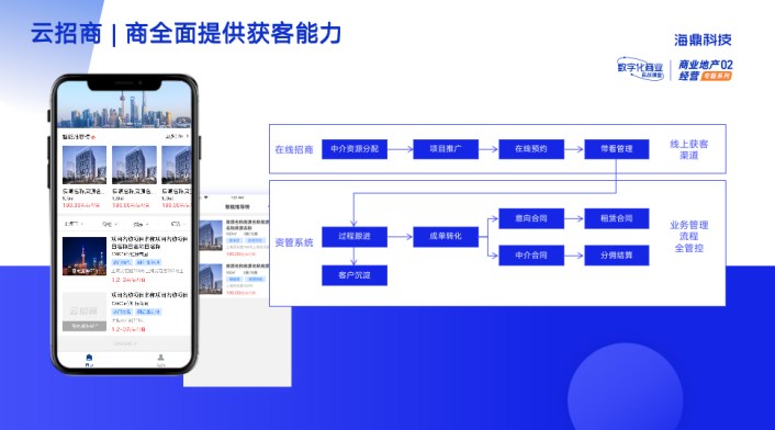 在運(yùn)營(yíng)方端,整個(gè)招商流程清晰簡(jiǎn)潔,可以很好銜接資管系統(tǒng),在線招商線上平臺(tái)可作為招商資源的補(bǔ)充,全面提升招商獲客能力。