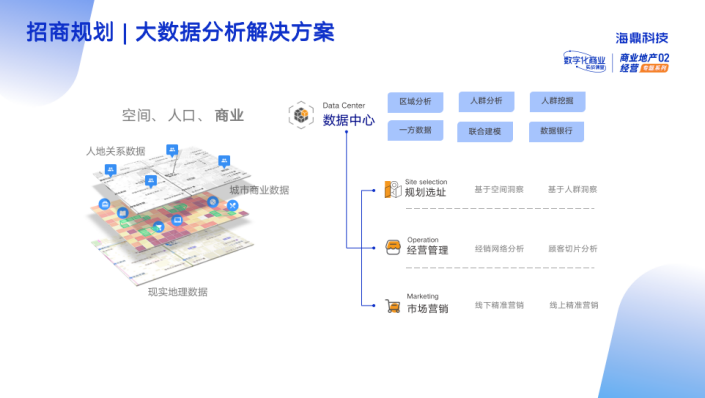 另外,大數(shù)據(jù)中心還可以在籌備評(píng)估、招商實(shí)施、開業(yè)旺場(chǎng)、招商調(diào)整等商業(yè)經(jīng)營(yíng)的各個(gè)階段提供決策分析,賦能招商運(yùn)營(yíng)。