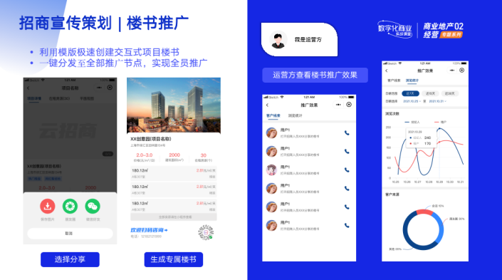 在線招商平臺(tái)還具備樓書推廣功能,可利?模版快速創(chuàng)建交互式項(xiàng)目樓書,?鍵分發(fā)?全部推?節(jié)點(diǎn),可實(shí)現(xiàn)全員招商推廣。