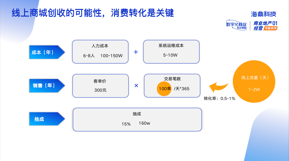 據(jù)統(tǒng)計(jì),一般購(gòu)物中心每天至少擁有1-2萬(wàn)的客流量,在流量充足的情況下,轉(zhuǎn)化效率是關(guān)鍵。另外,由于線上商城系統(tǒng)在成本中占比不高,隨著運(yùn)營(yíng)的加深,成本分?jǐn)倢?huì)變得更低。