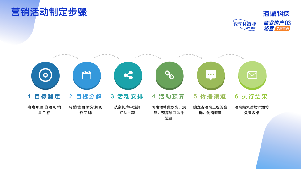 集團(tuán)旗下項(xiàng)目制定營(yíng)銷活動(dòng)大致可分為以下六個(gè)步驟: